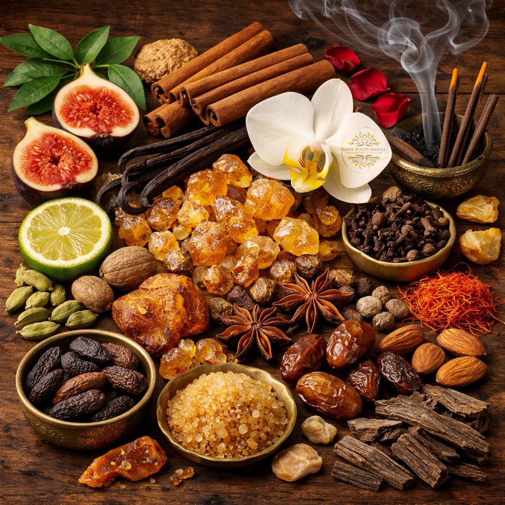 Musky & Resinous: A deep, warm, earthy sweetness anchored by a warm, opulent foundation of vanilla, amber, musk, sandalwood, or Resins (like Benzoin, Myrrh).